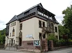 Das Bauwerk entstand in der Zeit um 1905 in einer historisierenden Gestaltung, die sich vor allem am Balkon und polygonen Erker zeigt. Die Form des Daches und die Grundstückseinfriedung zeigen Elemente des Jugendstils.