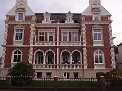 - Nr. 76/76A: Zweigeschossiges, historisierendes verklinkertes Doppelwohnhaus von um 1900 (D) mit zwei seitlichen markanten Giebeln und Loggien