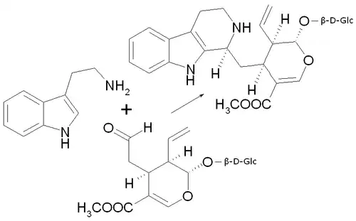 Es entsteht durch Pictet-Spengler-Kondensation von Tryptamin und dem C-7 des Secologanin.[6] Diese Reaktion wird von dem Enzym Strictosidin-Synthase katalysiert.[7]