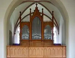 II/P | 26 | Ursprünglich hinterspielige Brüstungsorgel mit Unterpositiv als Echo. 1896 eingreifender Um- und technischer Neubau durch Johann Stockhausen; 15 Register ganz oder teilweise erhalten; restauriert und technisch rekonstruiert 1988 Gebr. Oberlinger, Nachintonation und klangliche Rekonstruktion 2011 Raab-Plenz Orgelbau, Bad Kreuznach[21] |