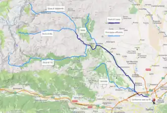 | Abfluss über | Stura di Lanzo → Po → Adria | |