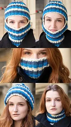 Bereits in den 1960er Jahren brachte der Unisex-Pionier Rudi Gernreich gemusterte Balaclavas auf den Markt, die nur einen Augenschlitz frei ließen.[4] In den letzten Jahren kam die Balaclava auch in der Mode außerhalb des Outdoor-Sektors zur Geltung. So entwarf Raf Simons für Calvin Klein verschiedene handgestrickte Modelle und auch Gucci und andere Modehäuser brachten 2018 verschiedene Balaclavas auf den Markt, z. B. in der Dreilochvariante.[5] Laut Süddeutscher Zeitung war die Sehschlitz-Wollmütze 2018/19 nicht nur ein Must-Have-Accessoire, sondern endlich auch eine halbwegs brauchbare Mode-Kopfbedeckung.[6][7] Etwas später kam der Trend dann auch über Sportmode-Hersteller wie Nike und Adidas mit einer großen Bandbreite von Formen und Materialien in der Alltagsmode wie der von Zara für beide Geschlechter an.[8][9] Die Vogue bezeichnete die Balaclava im März 2021 als eines der zehn wichtigsten Accessoires für den Herbst 2021[10] und im folgenden Oktober anlässlich der Vorstellung verschiedener Damen- und Herren-Balaclavas durch prominente Designhäuser als „Must-Have-Accessoire“ der Saison[11] Gesichtsmasken wurden auch infolge der COVID-19-Pandemie Teil der Normalität. Auch Prominente wie Kim Kardashian und Justin Bieber traten in einer das Gesicht bedeckenden Balaclava auf.[9]