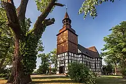 - Die katholische Kirche der hll. Peter und Paul (Kościól ŚŚ Piotra i Pawła) wurde 1731–1734 in Fachwerk-Bauweise an der Stelle mehrerer Vorgängerbauten errichtet. Der Glockenturm entstand 1837.