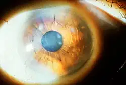 - ↑ G. K. Klintworth: Corneal dystrophies. In: Orphanet Journal of Rare Diseases. Bd. 4, Februar 2009, S. 7, doi:10.1186/1750-1172-4-7, PMID 19236704, PMC 2695576 (freier Volltext) (Review).