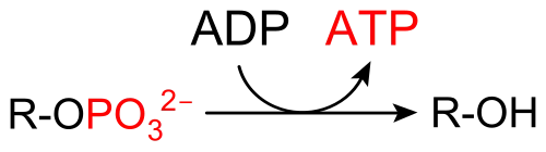 Bei der Substratkettenphosphorylierung überträgt ein phosphoryliertes Zwischenprodukt seine Phosphorylgruppe (anorganisches Phosphat) auf ADP. Da das Gruppenübertragungspotential von ATP geringer ist als das des Zwischenproduktes, findet die Reaktion in eine Richtung statt.