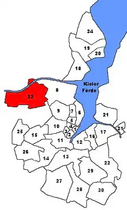 - ↑ Gemeindewahl 2023 | Kiel Gemeindewahl_2023_Kiel in 0100208 - Wahlkreis 08. Abgerufen am 18. Februar 2025.