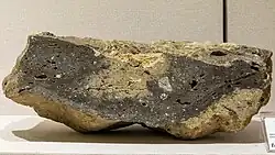 Grüner Suevit aus dem Impaktkrater von Rochechouart in Frankreich