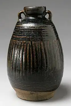 Nur in Si Satchanalai produzierte, von honigfarben über mittel- bis dunkelbraun ausfallende Keramik. Die Dekoration besteht aus eingeritzten, horizontal verlaufenden Bändern. Die Produktpalette setzt sich aus kugelförmigen Flaschen mit zwei Henkeln, kürbisförmigen Vasen, Vorratskrügen, bauchigen Krügen und figürlichen Darstellungen zusammen.[5]
