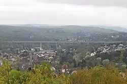 Das insgesamt 31 Meter breite und 50 Meter hohe Bauwerk besteht aus jeweils einer Balkenbrücke pro Richtungsfahrbahn. Es wurde vom 21. März 1966 bis zum 10. Juli 1969 errichtet. Die Investitionssumme betrug rund 16,5 Millionen Deutsche Mark. Die im Grundriss gekrümmte Brücke ist 800 Meter lang und besitzt 16 Öffnungen mit jeweils 50 Meter Stützweite. Die beiden Überbauten haben einen Plattenbalkenquerschnitt mit vier nebeneinander liegenden Spannbetonfertigteilträgern. Die 15 v-förmigen Pfeilerpaare haben eine Flachgründung.[1]