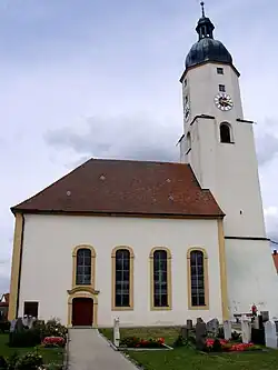 Außer der Pfarrkirche gelten als Baudenkmäler die zumeist aus dem 18. Jahrhundert stammenden Wohnstallbauten Burggriesbacher Straße 2, Dorfstraße 9, Hauptstraße 50, Froschgasse 1 und 2, das Hirtenhaus in der Hauptstraße 21, das Pfarrhaus in der Hauptstraße 34, ein Kriegerdenkmal-Obelisk für die im Ersten Weltkrieg Gefallenen und ein spätmittelalterliches Steinkreuz an der Staatsstraße 2237.[25]