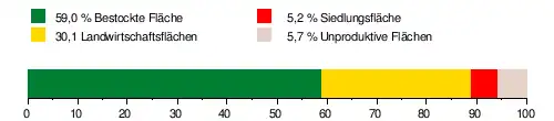 Das Einzugsgebiet besteht zu 59,0 % aus bestockter Fläche, zu 30,1 % aus Landwirtschaftsfläche, zu 5,2 % aus Siedlungsfläche und zu 5,7 % aus unproduktiven Flächen.