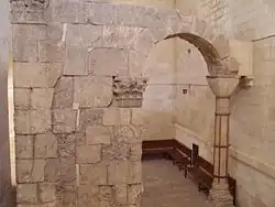 Der Suq al-Dabbagha, die „Gerbergasse“, stößt von Westen auf den Suq Chan ez-Zeit, der sich hinter dieser Kreuzung in der zentralen Gasse einer dreischiffigen Markthalle fortsetzt, dem Suq al-Aṭṭarin. Wie die Kreuzgratgewölbe zeigen, stammt ein größerer Teil der Bausubstanz der Markthalle (spätestens) aus der Kreuzfahrerzeit; damals war hier der Hauptmarkt, das Forum rerum venalium. An der Ostseite des Suq al-Aṭṭarin tragen die Konsolen der Jochbögen Nr. 13 bis 17 die Inschrift Sancta Anna. Das bedeutet, dass die Einnahmen aus diesen Läden einst dem St. Anna-Kloster zugutekamen.[10]