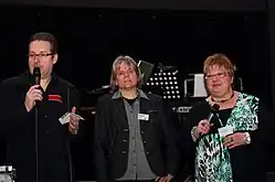 Verleihung des Schallwelle-Musikpreises am 10. März 2012 im Planetarium Bochum. Stefan Erbe, Susanne Hüttemeister und Sylvia Sommerfeld bei der Eröffnungsveranstaltung