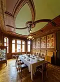 Das Bauwerk befindet sich an einem zentralen Platz der Stadt und sollte den zwei Funktionen Arbeiten und Wohnen gerecht werden. Das Gebäude ist aus fein- und grobbehauenem Granit gefertigt und besitzt einen Turm, einen Giebel und einen Erker. Die Ikonographie des Gebäudes sind von der romanischen Architektur und auch von den Stabkirchen inspiriert. So wurden Ornamente im Urnes-Stil und das Eulen-Motiv verwendet.