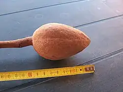 Die braunen, holzigen und fünfklappigen Kapselfrüchte sind eiförmig und ungefähr 7,5 bis 15 cm lang, sie hängen im Winter an schmalen Stängeln. Im reifen Zustand platzen sie meist unten, aber auch oben auf, und die 35 bis 45, flachen, geflügelten und rotbraunen, 5 bis 7 Zentimeter großen Samen, die mit dem Flügel, oben an einer dicken, fünfeckigen Mittelsäule hängen, werden durch den Wind ausgebreitet. Die Fruchthüllen sind trocken oder hart.[1][4]