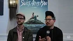 Daniel Scheinert und Daniel Kwan vor einem Filmplakat von Swiss Army Man (2016)
