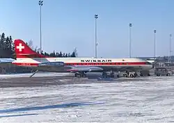 Am 1. November 1972 wurde in der Schweiz ein Nachtflugverbot eingeführt. Am 9. Dezember 1972 traf die erste DC-10 in Zürich ein. Anlässlich der Kapitalerhöhung der Balair übernahm Swissair die Aktienmehrheit und ermöglichte damit, eine 250-plätzige DC-8-63 zu beschaffen.[19] Die Mitarbeiterzahl stieg Ende 1972 auf 13'707, davon war 15 % fliegendes Personal.