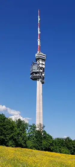 1974 ging die Satellitenbodenstation Leuk im Kanton Wallis in Betrieb. Die PTT begann 1975 mit dem Autotelefon-Projekt «mobiles Telefonnetz für Fahrzeuge», im Zuge dessen auch die Marke Natel A (Nationales Autotelefonnetz) eingeführt wurde. Mit der Inbetriebnahme von Natel A 1978 wurde die PTT zum Pionier der mobilen Telefonie.[11] In den Jahren 1983 und 1987 folgten die Natel-Netze B bzw. C. Das GSM-basierte Mobiltelefonnetz Natel D (D=digital) wurde 1992 installiert. 1985 wurde die erste Glasfaser-Fernleitung zwischen Bern und Neuenburg verlegt, und 1988 das erste digitale Fernmeldenetz ISDN in der Schweiz in Betrieb genommen.