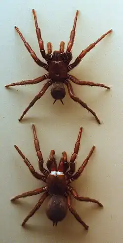 Männchen (links) und Weibchen (rechts) von Atrax sutherlandi