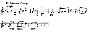 - Szene auf dem Lande (Scène aux champs), Adagio (F-Dur, 6/8-Takt); Dauer: ca. 16 min
