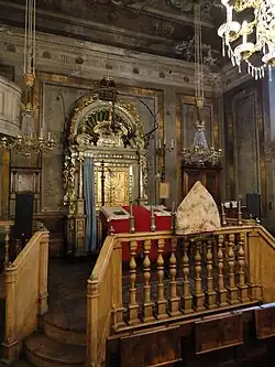 Im Inneren steht die schlichte Bima direkt vor dem schmuckvollen Thoraschrein aus dem 17. Jahrhundert, wie es für sephardische Synagogen Tradition ist. Auf den Türen des Schreins sind die Menora und Kultinstrumente dargestellt. Links vom Thoraschrein befindet sich eine erhöhte Kanzel.