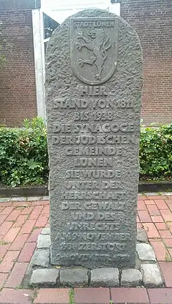 Heute erinnert am ehemaligen Standort ein Gedenkstein an die Synagoge von Lünen. Auf deren Gebiet liegen heute der Sankt-Georg-Kirchplatz sowie die Stadttorstraße. Die erste Erwähnung von Juden in Lünen war 1544.