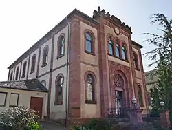 Die im neomaurischen Stil erbaute Synagoge wurde während des Zweiten Weltkrieges von den deutschen Besatzern verwüstet und ausgeplündert. Nach 1945 wurde sie wieder als Synagoge genutzt und schließlich 1989 an die katholische Pfarrgemeinde verkauft. Diese baute das Gebäude zu einem Gemeindezentrum um.