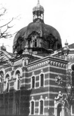 Nach dem Einmarsch der Wehrmacht wurde in der Nacht vom 15. zum 16. März 1939 die Synagoge unter anderem von örtlichen fanatisierten Faschisten überfallen und angezündet. Sie hinderten die Städtische Feuerwehr am Löschen, so dass die Synagoge niederbrannte. Was vom Gebäude an Ornamenten und Einrichtung übrig blieb, wurde geplündert. Die Trümmer wurden im Winter 1939/40 geräumt und bis 1941 wurde das Areal in einen grasbedeckten Park umgewandelt. Im Jahr 1955 wurde dort ein Denkmal von Lenin und Stalin aufgestellt, das 1990 wieder entfernt wurde. Heute befindet sich an der Stelle ein Parkplatz; an einem benachbarten Gebäude der Palacký-Universität wurde eine Gedenktafel angebracht.