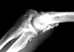 - ↑ Thomas D. Mueller et al.: Primary synovial chondromatosis of the elbow. In: Journal of Shoulder and Elbow Surgery. Band 9, Nr. 4, 2000, S. 319–322, doi:10.1067/mse.2000.106744, PMID 10979529.