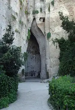 In über zehn großen Steinbrüchen (Latomien) wurden Kalksteine zum Aufbau der antiken Stadt gewonnen. Zu den größten Steinbrüchen zählen Latomia dei Cappuccini und Latomia del Paradiso. Das „Ohr des Dionysios“ ist eine künstliche, in den Fels gehauene Höhle. Sie ist etwa 64 m lang, über 20 m hoch und bis zu 11 m breit. Ihre Akustik gilt als bemerkenswert.