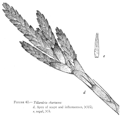 - Tillandsia bartramii Elliott (Syn.: Tillandsia juncea sensu LeConte, Tillandsia pinifolia LeConte, Tillandsia myriophylla Small, Tillandsia simulata Small): Sie ist von Georgia über Mexiko und Guatemala weitverbreitet.