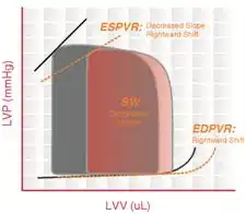 Die isolierte systolische Dysfunktion verursacht eine Verschiebung der Druck-Volumen-Kurve nach rechts, sekundär zur verminderten ventrikulären Kontraktilität. Die Breite der Druck-Volumen-Kurve nimmt infolge des verminderten Schlagvolumen ab.[6]