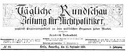 - ↑ ZDB-Eintrag Tägliche Rundschau über Reich, Staat und Volk : unabhängige Zeitung für sachliche Politik. Berlin : [Verlag nicht ermittelbar] ZDB-ID 749510-9 https://zdb-katalog.de/title.xhtml?idn=014053675&view=full
