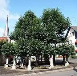 1750 band man Lindenäste zu einem Ring, der die beiden Bäume noch heute umrahmt. Wegen des zunehmenden Gewichts der waagerechten Äste wurden 1789 Pfeiler aus grauem Sandstein in zwei konzentrische Reihen um die Linde gesetzt. Diese wurden für 40 Gulden von dem Steinmetz Ankenbrand aus Falkenstein an die Gemeinde geliefert.