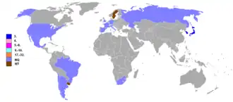 - Nicht qualifiziert: 15× (68,2 %; 1962, 1966, 1970, 1974, 1978, 1982, 1990, 1994, 1998, 2006, 2010, 2014, 2018 und 2022)
