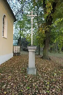 - Gusseisernes Kreuz auf einem Granitsockel neben der Kapelle, aufgestellt in der zweiten Hälfte des 19. Jahrhunderts. Die Erneuerung erfolgte 1990–1991 im Zuge der Sanierung der Kapelle.[8]