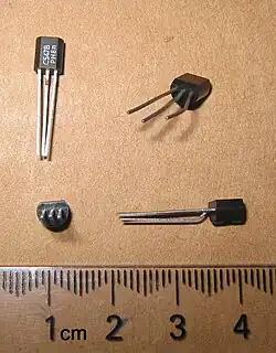 Der TO-92 ist ein früher weit verbreiteter Typ eines Halbleiter-Gehäuses für Durchsteckmontage, das für Transistoren und kleinere integrierte Schaltungen (Temperatursensor, Spannungsreferenz) verwendet wird. Das Gehäuse besteht häufig aus gefülltem Epoxidharz.