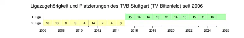Das erste Spiel in der Scharrena in Stuttgart fand am 4. Mai 2012 gegen die HSG Nordhorn-Lingen statt.[33] Mit Beginn der Saison 2012/13 wechselte der TV Bittenfeld seine Heimspielstätte von der Gemeindehalle in Bittenfeld zur Scharrena. Einzelne Spiele fanden in der Porsche-Arena statt,[34] seit der Saison 2021/22 spielt der TVB Stuttgart ausschließlich dort.[35]