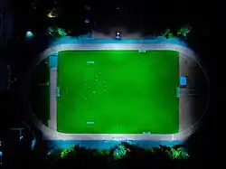 Die Sportanlage ist ausgestattet mit einer 400-Meter-Laufbahn und einer Leichtathletikanlage. Diese ermöglicht die Durchführung verschiedener Leichtathletikdisziplinen. Zudem verfügt der Sportplatz über einen Hart-, sowie einen Rasenplatz, der hauptsächlich für Fußball genutzt wird. Eine Flutlichtanlage sorgt dafür, dass Sportaktivitäten auch in den Abendstunden stattfinden können.