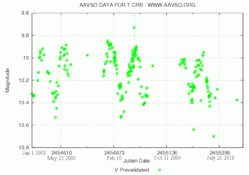 | Helligkeitsschwankungen von T CrB zwischen Januar 2008 und November 2010 | |||||||||||||||||