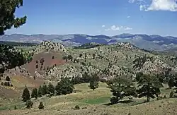 - Im östlichen Hinterland das Eyre-YüğIük-Bergland: Diese östlichen Partien des Taşeli-Plateaus umfassen die höheren, stark verkarsteten Kammregionen der Taşeli-Hochfläche südöstlich von Karaman mit oft weiten kahlen Kalkflächen z. B. in Umfeld und Vorland des 2474 m hohen Yüğlük Dağı.