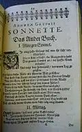 In Straßburg bereitete Gryphius eine erste Gesamtausgabe seiner deutschsprachigen Werke durch den Drucker und Verleger Caspar Dietzel[3] vor. Dietzel war aber „durch allerhand Wiederwertigkeiten und Processe“,[4] wohl wirtschaftliche Schwierigkeiten,[5] verhindert, den Druck zu vollenden. Das unvollständige Produkt erschien unautorisiert 1650 bei Johann Hüttner in Frankfurt am Main. Es enthielt neben Gryphius’ erstem Trauerspiel „Leo Arminius“ und Überarbeitungen früherer Gedichte das neue Sonettbuch „ANDREAE GRYPHII SONNETE. Das Ander Buch“.