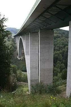 Die Talbrücke Wilde Gera der Bundesautobahn 71 östlich von Oberhof war mit 252 m Spannweite von der Fertigstellung im Jahr 2000 bis zur Fertigstellung der Talbrücke Froschgrundsee und der gleich weit spannenden Grümpentalbrücke im Jahr 2011 die längste Stahlbetonbogenbrücke Deutschlands. Sie überspannt die Wilde Gera, die Bahnstrecke Neudietendorf–Ritschenhausen und die Landesstraße 2149 zwischen Gräfenroda im Norden und Gehlberg im Süden.