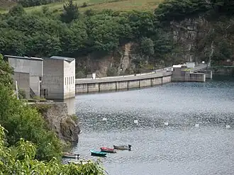 Die installierte Leistung des Kraftwerks beträgt 30[10] (bzw. 43[12] oder 43,2[11]) MW; es ging 1933[11] (bzw. 1944)[3] in Betrieb.[13][A 1] Jede der drei Turbinen des Kraftwerks leistet maximal 14,4 MW.[3][11] Das Maschinenhaus befindet sich ungefähr 300 m von der Staumauer entfernt auf der linken Flussseite.