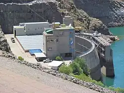 Das Maschinenhaus befindet sich am Fuß der Talsperre. Es wird durch eine doppelt gekrümmte Bogenstaumauer aus Beton mit einer Höhe von 26,4[2] m vom Unterwasser getrennt.