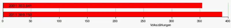 Die Bevölkerungszunahme zwischen 2001 und 2011 lag bei 10,04 % oder rund 35.500 Menschen. Die Entwicklung verdeutlicht folgende Tabelle:
