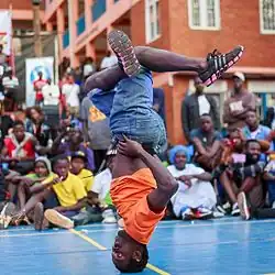 Contact Improvisation ist eine postmoderne Tanzform,[18] die sich in den 1970er Jahren aus avantgardistischen Tanzexperimenten entwickelte. Ein sich ständig verlagernder Körper-Kontaktpunkt dient den Partnern als gemeinsame Basis, von der aus sie mit ihrem Gewicht spielen, sich aneinander bewegen und sich mit überraschender Leichtigkeit hochheben. Jede Bewegung entwickelt sich unmittelbar aus der Vorangegangenen durch die Kommunikation der Körper. Die Tanzenden treffen sich in Rahmen von Jamsessions, Workshops oder mehrtägigen, internationalen Festivals mit bis zu 400 Teilnehmern.