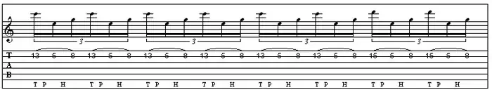 E-Gitarristen wie u. a. Enver Ismailov, Stanley Jordan, Steve Lynch, Ritchie Kotzen, Greg Howe, Jennifer Batten, Buckethead und vor allem Randy Rhoads und Darko Jurković bauten diese Technik virtuos aus.