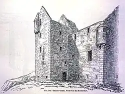 Im Februar 1685 wurde Sir George Mackenzie, 2. Baronet of Tarbat, zusätzlich der Titel eines Lord Castlehaven verliehen.[12] Der Name bezog sich auf die an der Nordküste von Tarbat gelegene Anlage Castlehaven, die lange als Ruine einer Burg oder Festung betrachtet wurde,[13] nach heutigem Stand der Forschung aber als Überrest eines eisenzeitlichen Duns angesehen wird.[14] In der Folge wurde die Ortschaft Portmahomack in Castlehaven umbenannt[15] und auch für Tarbat Castle kam der Name in Gebrauch. Beides blieb nicht von Dauer: im Falle der längst verlassenen Burg setzte sich ab der zweiten Hälfte des 18. Jahrhunderts die zuvor bereits lokal gebräuchliche Bezeichnung Ballone Castle durch.