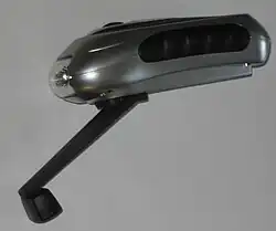 Dynamotaschenlampen mit Akku gibt es heute mit LED in verschiedenen mehr oder weniger billigen Versionen; ein paar Sekunden zu kurbeln reicht für ein paar Minuten Leuchtdauer.Eine Taschenlampe mit Generator und LEDMini-Generator-LED-Lampe